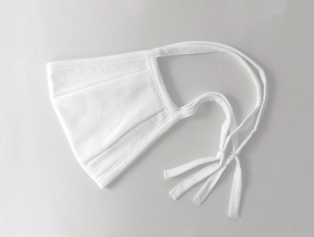 天竺を2枚合わせた2層構造の生地を、ダーツによって立体構造に仕立てました。ほどよい生地厚と空間によって楽に呼吸ができます。※うるおいマスクはガーゼ2層、天竺1層の3層構造