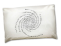 「カタカムナ 枕カバー」は、第1首から第8首のウタヒを黄金螺旋状に配置しプリントしています。表面は、『正のカタカムナ』、裏面は、『負のカタカムナ』がそれぞれプリントされています。また素材にはオーガニックコットンを使用してます。