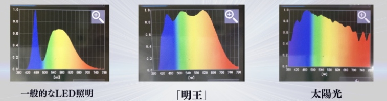 森氏は名だたる国立大学の教授陣と連携し、「本当に人にやさしい光とは何か?」を問い続け、20年以上にわたって研究を重ねてきました。そしてたどり着いたのが、自然光に限りなく近い“15種類の波長”を再現した光、“明王”です。