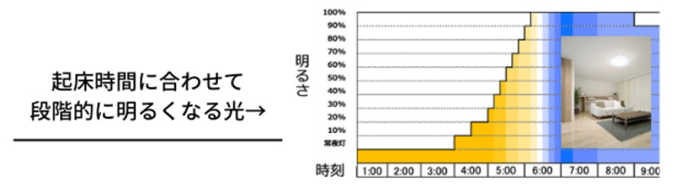 「目覚ましが鳴ってもなかなか起きられず、布団の上で動けない、、、」そんな方に、朝の光を浴びるだけで正しい生活リズムへのサポートをします。