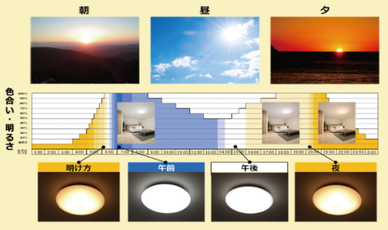 「明王」は太陽光と同じ生体リズムに合わせた光を演出します。