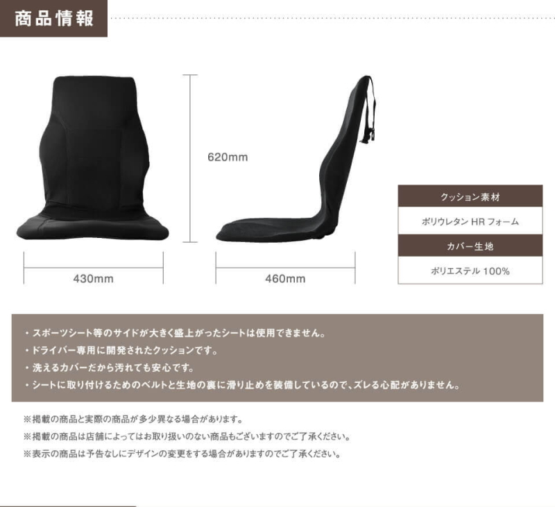「腰だけでなく、首・肩・腕・お尻・足もリラックス」。運転時の身体のストレスを軽減し快適なドライブと移動後の活動も元気に。